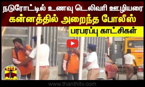 நடுரோட்டில் உணவு டெலிவரி ஊழியரை கன்னத்தில் அறைந்த போலீஸ்..பரபரப்பு காட்சிகள்