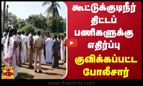 பாபநாசம் அருகே வடசருக்கை - புது குடிசை இடையே கூட்டுக் குடிநீர் திட்ட பணிகள் மேற்கொள்ளப்பட்டுள்ளன. கதவணைத் திட்டத்தை செயல்படுத்திய பின்னர் கூட்டுக் குடிநீர் திட்டத்தை தொடங்குவதில் இடையூறுகள் இல்லை என, அப்பகுதி மக்கள் மற்றும் விவசாயிகள் எதிர்பார்க்கின்றனர். இந்நிலையில், பொதுமக்களின் எதிர்ப்பையும் மீறி கூட்டுக் குடிநீர் திட்டப் பணிகள் தொடங்கப்பட்டுள்ளன. இதனால் அப்பகுதியில் போலீசார் குவிக்கப்பட்டுள்ளனர். புது குடிசை கிராமப் பகுதியில் தண்டோரா மூலம் பொது மக்களுக்கு அழைப்பு விடுத்து வருகின்றனர்.