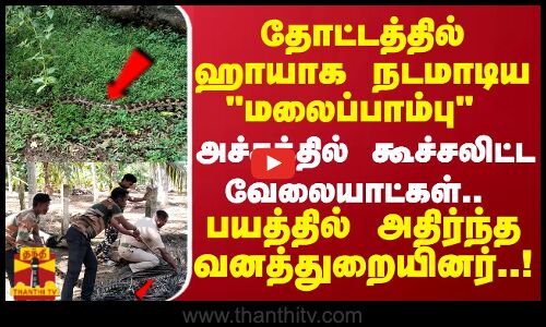 தோட்டத்தில் ஹாயாக நடமாடிய மலைப்பாம்பு ... பயத்தில் அதிர்ந்த வனத்துறையினர்..!