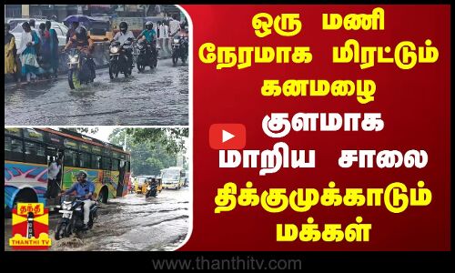 ஒரு மணி நேரமாக மிரட்டும் கனமழை.. - குளமாக மாறிய சாலை.. திக்குமுக்காடும் மக்கள்..