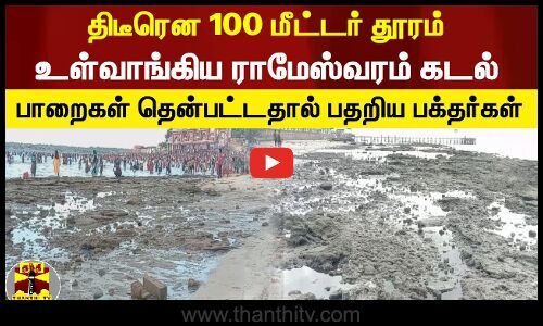 ராமேஸ்வரம் அக்னி தீர்த்த கடற்கரை பகுதியில் சுமார் 100 மீட்டர் தூரத்துக்கு திடீரென கடல் உள்வாங்கி உள்ளது.