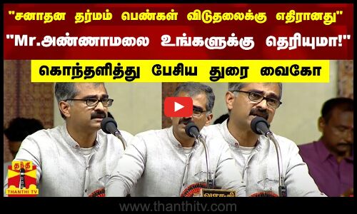 "சனாதன தர்மம் பெண்விடுதலைக்கு பெண்களுக்கு எதிரானது" - கொந்தளித்து பேசிய துரை வைகோ