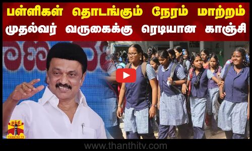 முதலமைச்சர் ஸ்டாலின் வருகையை ஒட்டி காஞ்சிபுரத்தில் பள்ளிகள் தொடங்கும் நேரம் மாற்றப்பட்டுள்ளது. கலைஞர் மகளிர் உரிமைத் தொகை வழங்கும் திட்டத்தை தொடக்கி வைப்பதற்காக, முதலமைச்சர் ஸ்டாலின் இன்று காஞ்சிபுரம் வருகிறார். இதனால், காஞ்சிபுரம் பகுதியில் செயல்படும் பள்ளிகள் காலை 8.30 மணிக்கு செயல்படத் தொடங்கும் என்று பள்ளி நிர்வாகங்கள் அறிவித்துள்ளன.
