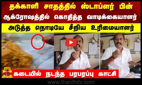 தக்காளி சாதத்தில் ஸ்டாப்ளர் பின்..ஆக்ரோஷத்தில் கொதித்த வாடிக்கையாளர்..அடுத்த நொடியே சீறிய உரிமையாளர்