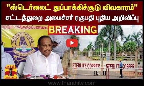"ஸ்டெர்லைட் துப்பாக்கிச்சூடு விவகாரம்" | சட்டத்துறை அமைச்சர் ரகுபதி புதிய அறிவிப்பு