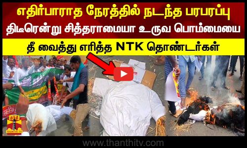 திடீரென்று சித்தராமையா உருவ பொம்மையை தீ வைத்து எரித்த NTK தொண்டர்கள்