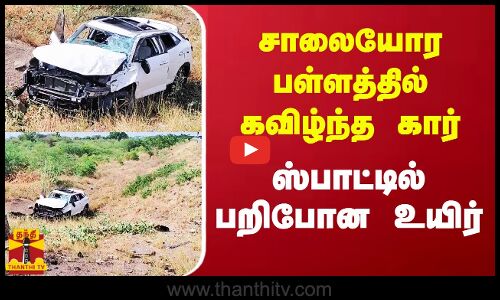 சாலையோர பள்ளத்தில் கவிழ்ந்த கார்.. ஸ்பாட்டில் பறிபோன உயிர்