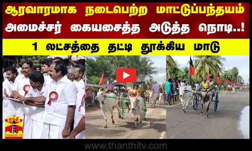 ஆரவாரமாக நடைபெற்ற மாட்டுப்பந்தயம்..அமைச்சர் கையசைத்த அடுத்த நொடி..1லட்சத்தை தட்டி தூக்கிய மாடு