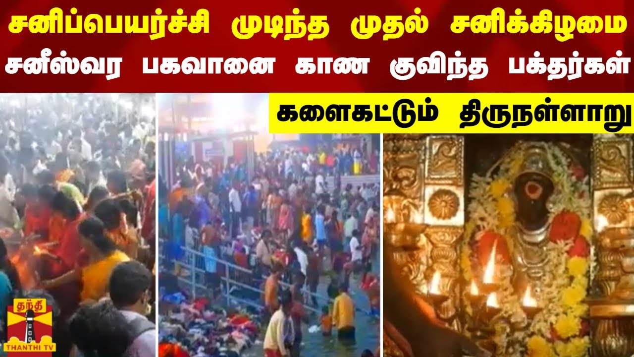சனிப்பெயர்ச்சி முடிந்த முதல் சனிக்கிழமையான இன்று, திருநள்ளாறில் திரளான பக்தர்கள் அதிகாலை முதலே சாமி தரிசனம் செய்து வருகின்றனர்.