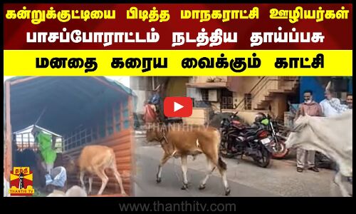 கன்றுக்குட்டியை பிடித்த மாநகராட்சிஊழியர்கள் பாசப்போராட்டம் நடத்திய தாய்பசு மனதை கரைய வைக்கும் காட்சி