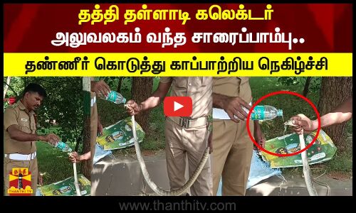 தத்தி தள்ளாடி கலெக்டர் அலுவலகம் வந்த சாரைப்பாம்பு.. தண்ணீர் கொடுத்து காப்பாற்றிய நெகிழ்ச்சி