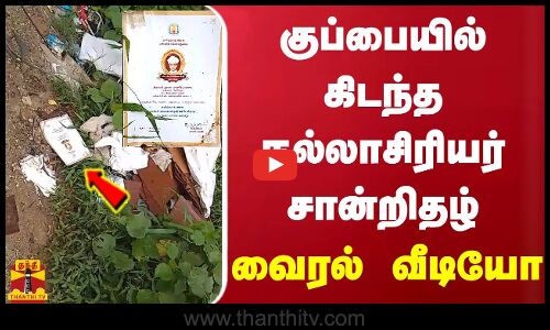 குப்பையில் கிடந்த நல்லாசிரியர் சான்றிதழ் - வைரல் வீடியோ