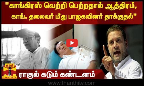 இந்த தாக்குதல் குறித்து டிவிட்டரில் கண்டனம் தெரிவித்துள்ள ராகுல் காந்தி, காங்கிரஸ் வெற்றி பெற்றதால், காங்கிரஸ் காரர்கள் மீது பாஜகவினர் நடத்திய கொடூரமான தாக்குதலை கண்டிப்பதாக தெரிவித்துள்ளார். மேலும், மக்கள் தங்களுடன் இருப்பதாகவும், போலீசார் தாக்குதலை தடுக்காமல் வாய்மூடி நின்றது வெட்கக்கேடானது எனவும் அவர் குறிப்பிட்டுள்ளார்.