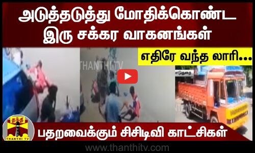 அடுத்தடுத்து மோதிக்கொண்ட இரு சக்கர வாகனங்கள்;எதிரே வந்த லாரி - நெஞ்சை பதறவைக்கும் சிசிடிவி காட்சிகள்