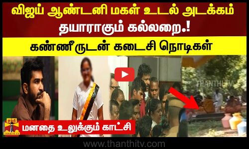 விஜய் ஆண்டனி மகள் உடல் அடக்கம் தயாராகும் கல்லறை கண்ணீருடன் கடைசி நொடிகள் !