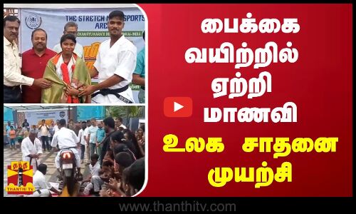 பைக்கை வயிற்றில் ஏற்றி மாணவி உலக சாதனை முயற்சி | #Pudukottai | #ThanthiTV