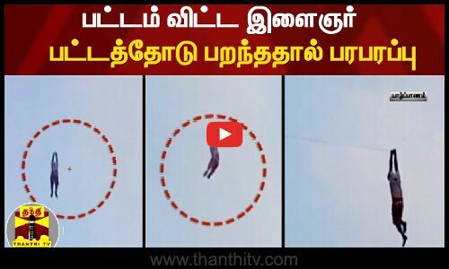 பட்டம் விட்ட இளைஞர் பட்டத்தோடு பறந்ததால் பரபரப்பு