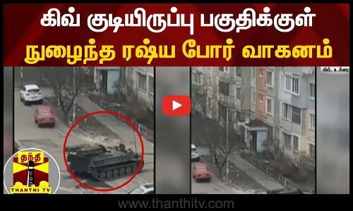 உக்ரைன் தலைநகர் கிவ் நகரில் உள்ள குடியிருப்பு பகுதிகளுக்குள்ளாக ரஷ்ய போர் வாகனம் நுழைந்த வீடியோ காட்சிகள் வெளியாகியுள்ளன.