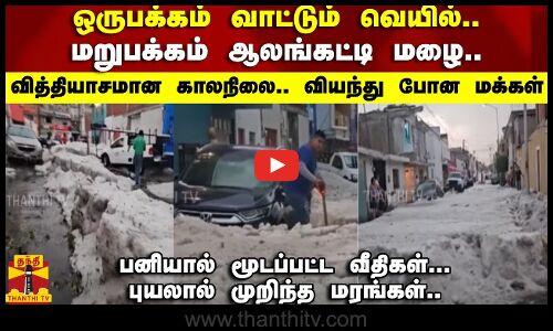ஒருபக்கம் வாட்டும் வெயில்...மறுபக்கம் ஆலங்கட்டி மழை..வித்தியாசமான காலநிலை.. வியந்து போன மக்கள்