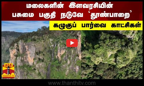 மலைகளின் இளவரசியின் பசுமை பகுதி நடுவே தூண்பாறை - கழுகுப் பார்வை காட்சிகள்
