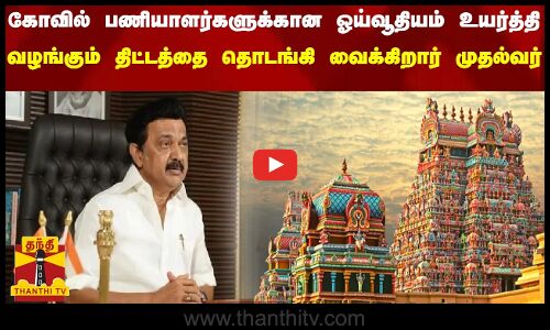 கோவில் பணியாளர்களுக்கான ஓய்வூதியம் உயர்த்தி வழங்கும் திட்டத்தை தொடங்கி வைக்கிறார் முதல்வர் ஸ்டாலின்.