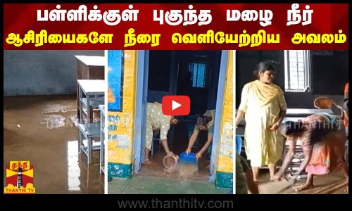 கோவை மேட்டுப் பாளையம் அருகே கன மழை காரணமாக ஊராட்சி ஒன்றிய நடுநிலைப்பள்ளிக்குள் மழை நீர் புகுந்த நிலையில், அதை ஆசிரியர்களே வெளியேற்றும் அவல நிலைக்குத் தள்ளப்பட்டனர்... திம்மம்பாளையம் ஊராட்சி ஒன்றிய நடுநிலைப்பள்ளிக்குள் புகுந்த மழை வெள்ளம் குட்டை போல் தேங்கியது... மாணவர்கள் பெரிதும் பாதிக்கப்பட்டனர். பள்ளிக்குள் புகுந்த மழை நீரை வெளியேற்ற ஊராட்சி சார்பில் யாரும் வராததால் தலைமை ஆசிரியை கலைச்செல்வி தலைமையில் ஆசிரியைகளே தேங்கிய மழை நீரை அகற்றும் பணியில் ஈடுபட்டனர்.