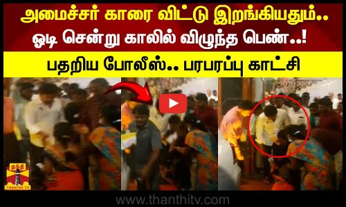 அமைச்சர் காரை விட்டு இறங்கியதும்..ஓடி சென்று காலில் விழுந்த பெண்..! பதறிய போலீஸ்.. பரபரப்பு காட்சி