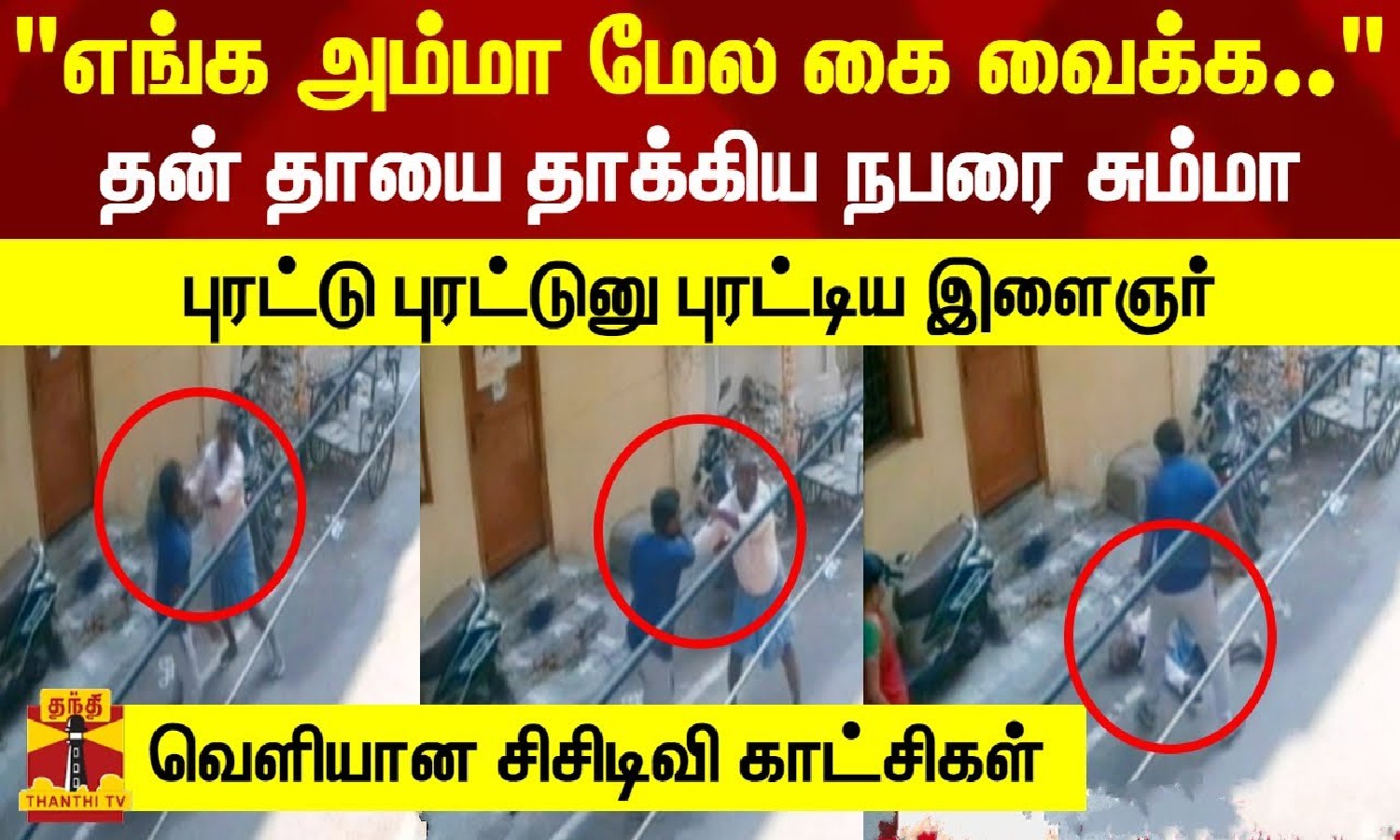 சென்னை மயிலாப்பூரில், தன் தாயை தாக்கிய நபர் மீது மகன் கொடுரமான தாக்குதல்