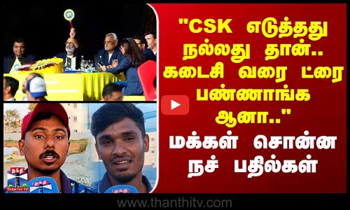 Street Interview | "CSK எடுத்தது நல்லது தான்.. கடைசி வரை ட்ரை பண்ணாங்க ஆனா.."- மக்கள் சொன்ன நச் பதில்கள்