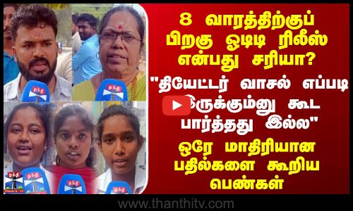 8 வாரத்திற்குப் பிறகு ஓடிடி ரிலீஸ் என்பது சரியா? - "தியேட்டர் வாசல் எப்படி இருக்கும்னு கூட பார்த்தது இல்ல"- ஒரே மாதிரியான பதில்களை கூறிய பெண்கள்
