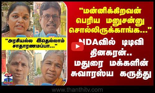 தேசிய ஜனநாயக கூட்டணியில் அமமுக இணைந்துள்ள நிலையில், டிடிவி தினகரனின் முடிவு குறித்து மக்கள் குரல் பகுதியில் எழுப்பப்பட்ட கேள்விகளுக்கு, மதுரை மாவட்டம் திருப்பரங்குன்றம் மக்கள் தெரிவித்த கருத்துக்களைப் பார்க்கலாம்...