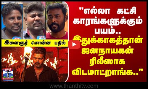 தவெக தலைவர் விஜய் நடித்த ஜனநாயகன் திரைப்படத்தின் சென்சார் வழக்கு தொடரும் நிலையில், தேர்தலுக்கு முன் அத்திரைப்படம் ரிலீஸ் ஆக வாய்ப்பிருக்கிறதா என்றும், ரிலீஸ் ஆவதில் ஏற்பட்டுள்ள பின்னடைவு, தேர்தலில் எதிரொலிக்குமா என்றும் மக்கள் குரல் பகுதியில் எழுப்பப்பட்ட கேள்விகளுக்கு, தூத்துக்குடி மாவட்டம் ஸ்ரீவைகுண்டம் மக்கள் தெரிவித்த கருத்துக்களைப் பார்க்கலாம்...
