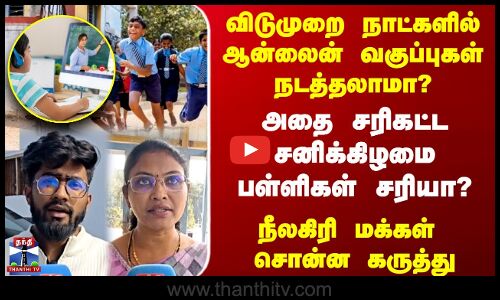 மழை காலங்களில் பள்ளிகளுக்கு விடுமுறை அறிவிக்கப்படுவதற்கு பதிலாக ஆன்லைன் வகுப்புகள் நடத்துவது சரியாக இருக்குமா என்பது குறித்து, மக்கள் குரல் பகுதியில் நீலகிரி மக்கள் தெரிவித்த கருத்துக்களை பார்க்கலாம்...