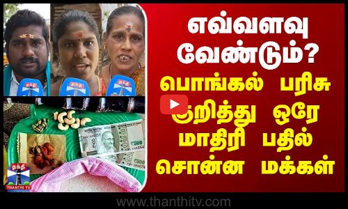 தமிழக அரசின் பொங்கல் பரிசுத் தொகை மீதான எதிர்பார்ப்புகள் குறித்து, மக்கல் குரல் பகுதியில் எழுப்பப்பட்ட கேள்விகளுக்கு விருதுநகர் மாவட்டம் சிவகாசி மக்கள் தெரிவித்த கருத்துக்களைப் பார்க்கலாம்...