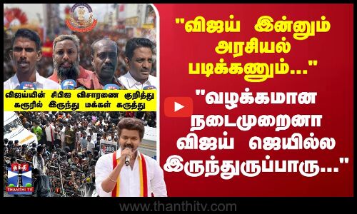 தவெக தலைவர் விஜய்யிடம், சிபிஐ விசாரணை நடத்தி வருவது வழக்கமான நடைமுறைதானா அல்லது அரசியல் அழுத்தமா என்று மக்கள் குரல் பகுதியில் எழுப்பப்பட்ட கேள்விகளுக்கு, கரூர்