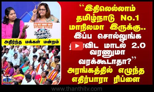 Makkal Mandram | TN Election 2026 | Tamilnadu CM | ``இதிலெல்லாம் தமிழ்நாடு No.1 மாநிலமா இருக்கு.. இப்ப சொல்லுங்க திராவிட மாடல் 2.O வரணுமா வரக்கூடாதா?'' | அரங்கத்தில் எழுந்த எதிர்பாரா ரிப்ளை | அதிர்ந்த மக்கள் மன்றம்