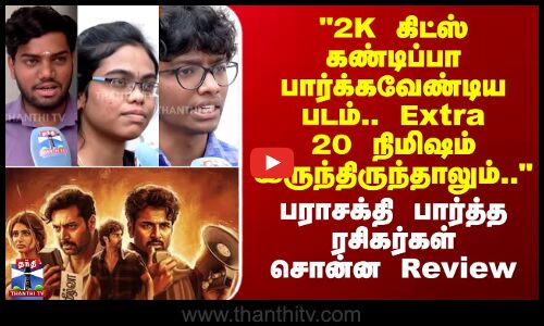 பராசக்தி திரைப்படம் ஹிந்தி எதிர்ப்பு போராட்டம் நடைபெற்ற காலகட்டத்திற்கே, தங்களை அழைத்துச் சென்றதாக, ஈரோட்டில் படத்தை பார்த்த ரசிகர்கள் கருத்து தெரிவித்துள்ளனர்.