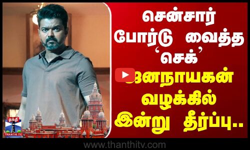ஜனநாயகன் படத்திற்கு சென்சார் சான்றிதழை உடனடியாக வழங்க உத்தரவிடக்கோரிய வழக்கில் சென்னை உயர்நீதிமன்றம் இன்று காலை 10.30 மணிக்கு தீர்ப்பளிக்கவுள்ளது.