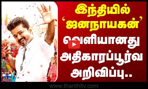 விஜய்யின் ஜனநாயகன் படம் தெலுங்கு மற்றும் இந்தியில் ரிலீஸ் ஆவதில் சிக்கல் நிலவுவதாக செய்திகள் வெளியான நிலையில், தற்போது இந்தியில் ரிலீஸ் ஆவது பற்றி அதிகாரப்பூர்வ அறிவிப்பு வெளியாகியுள்ளது. இப்படத்தை வட இந்தியாவில் Jan Neta என்ற பெயரில் இந்தியில் டப் செய்து Zee Studios நிறுவனம் ஜனவரி 9ஆம் தேதி ரிலீஸ் செய்யும் என தெரிவிக்கப்பட்டு உள்ளது.