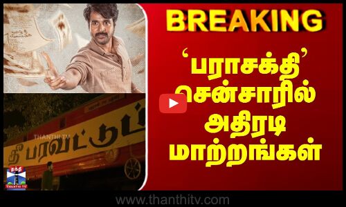 பராசக்தி படத்தின் "தீ பரவட்டும்" என்ற வசனம் "நீதி பரவட்டும்" என மாற்றம்/மாற்றம் செய்து பராசக்தி திரைப்படத்திற்கு U/A சென்சார் சான்றிதழ் கொடுக்கப்பட்டுள்ளது/பராசக்தி படத்தில் இந்தி திணிப்பு என வரும் வசனமும் சென்சாரின்போது மாற்றம்/"இந்தி என் கனவை அழித்தது" என்ற வசனம் "என் ஒரே கனவை இந்தி திணிப்பு எரித்தது" என மாற்றம் /மொத்தம் 25 மாற்றங்கள் சென்சார் போர்டு வழங்கிய அறிவுறுத்தலின் பெயரில் செய்யப்பட்டுள்ளன