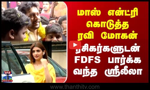 மாஸ் என்ட்ரி கொடுத்த ரவி மோகன் | ரசிகர்களுடன் FDFS பார்க்க வந்த ஸ்ரீலீலா