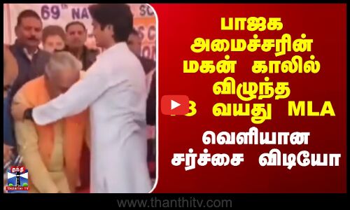 Madhya Pradesh | BJP | பாஜக அமைச்சரின் மகன் காலில் விழுந்த 73 வயது MLA - வெளியான சர்ச்சை விடியோ
