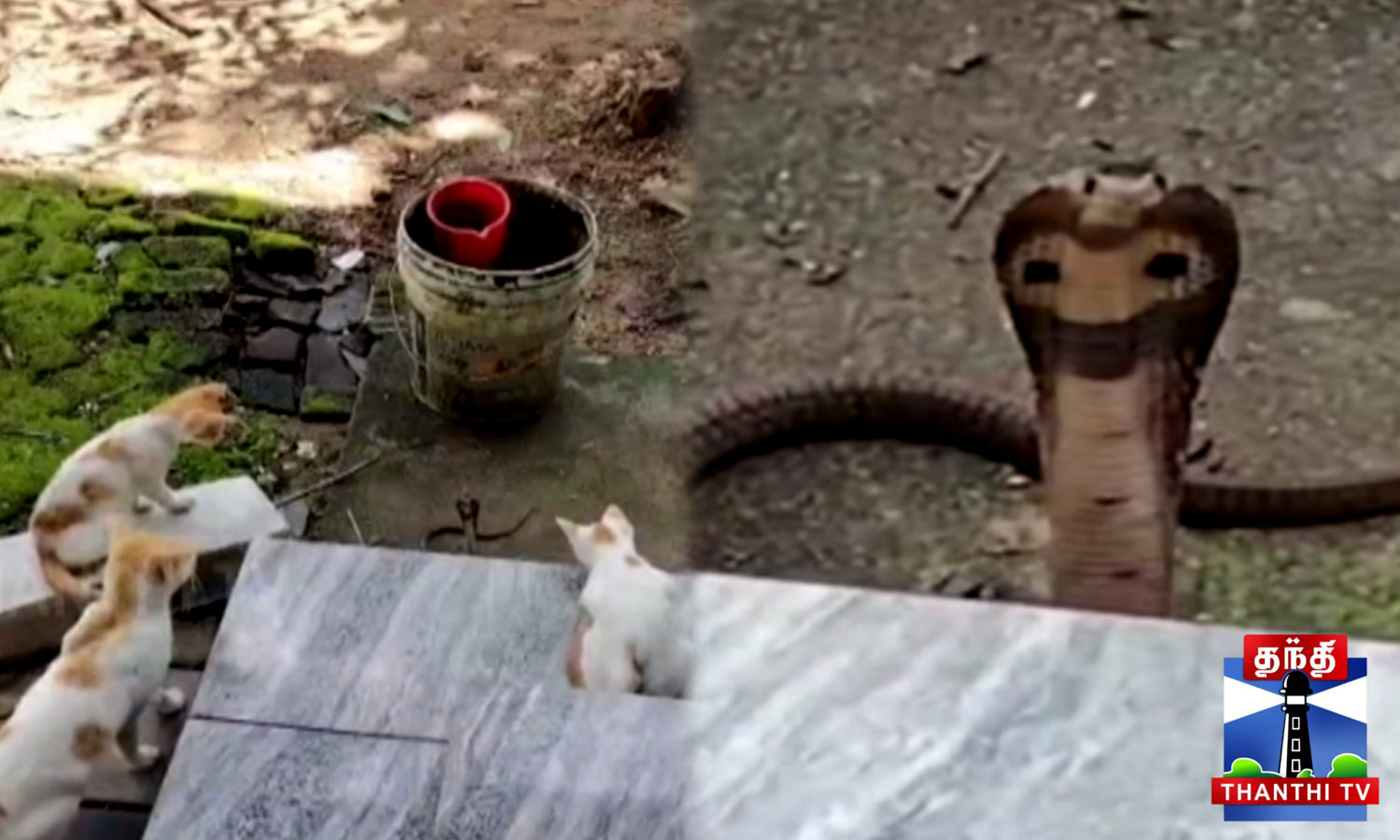கேரள மாநிலம், பாலக்காடு அருகே உள்ள பரப்பனா பகுதியில் வீட்டிற்குள் நுழைய முயன்ற நல்ல பாம்பை, அந்த வீட்டில் வளர்க்கப்படும் மூன்று பூனைகள் உள்ளே விடாமல் எதிர்த்து நின்றன. பூனைகள் சுற்றி நின்றாலும் பாம்பு பின்வாங்காமல் சீறிக் கொண்டு அமர்ந்திருந்தது. இந்த காட்சியை வீட்டின் உரிமையாளர் பதிவு செய்து, சமூக வலைத்தளத்தில் வெளியிட்டுள்ளார்.