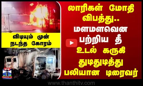 AndhraPradesh | லாரிகள் மோதி விபத்து.. மளமளவென பற்றிய தீ - உடல் கருகி துடிதுடித்து பலியான டிரைவர் - விடியும் முன் நடந்த கோரம்