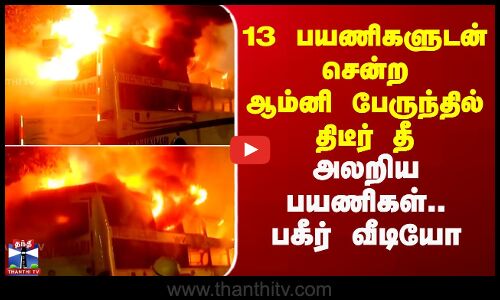 Bus Fire Accident | 13 பயணிகளுடன் சென்ற ஆம்னி பேருந்தில் திடீர் தீ - அலறிய பயணிகள் - பகீர் வீடியோ
