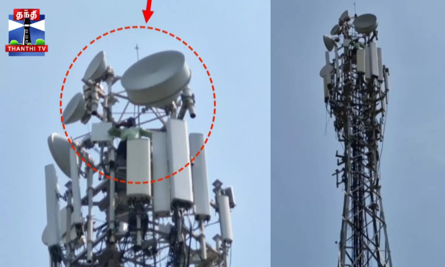 காரைக்கால் கீழகாசாகுடிமேடு மீனவ கிராமத்தை சேர்ந்த ராஜசேகர் இவருக்கு திருமணம் ஆகி மனைவி பிரிந்து சென்ற நிலையில் பெற்றோர்கள் உடன் வசித்து வருகிறார். இவர் அப்பகுதியில் உள்ள செல்போன் டவர் உச்சியில் ஏறி நின்று தற்கொலை செய்து கொள்ளப் போவதாக தெரிவித்துள்ளார். இதனையடுத்து சம்பவ இடத்திற்கு வந்த தீயணைப்பு துறை மற்றும் போலிசார் ராஜசேகரை கிழே இறங்கி வர கூறிய நிலையில் ஒரு மணி நேரத்திற்கு பிறகு ராஜசேகர் மீட்கப்பட்டார். போலீசார் விசாரணையில் ஊர் பிரச்சனை காரணமாக தற்கொலைக்கு முயன்றதாக தெரிவித்த அவரை முதல் உதவிக்கு அரசு மருத்துவமனைக்கு அனுப்பி வைத்தனர்.