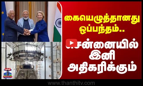 இந்தியா-ஐரோப்பிய ஒன்றியம் இடையே மேற்கொள்ளப்பட்டுள்ள தடையில்லா வர்த்தக ஒப்பந்தத்தின் மூலம் இந்தியாவிலிருந்து ஏற்றுமதி செய்யப்படும் 9,425 பொருட்களுக்கு வரி முற்றிலும் நீக்கப்பட்டுள்ளது...