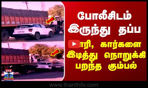 போலீசிடம் இருந்து தப்ப லாரி, கார்களை இடித்து நொறுக்கி பறந்த கும்பல் - வைரல் வீடியோ
