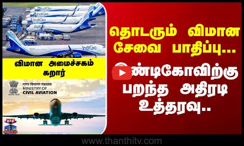 ரத்து செய்யப்பட்ட இண்டிகோ விமானங்களுக்கு பணம் செலுத்தி, நிலுவையில் உள்ள பயணிகளின் அனைத்து கட்டணங்களையும் டிசம்பர் 7 ஆம் தேதிக்குள் திரும்பி வழங்க வேண்டும் என மத்திய விமான போக்குவரத்து அமைச்சகம் உத்தரவிட்டுள்ளது.