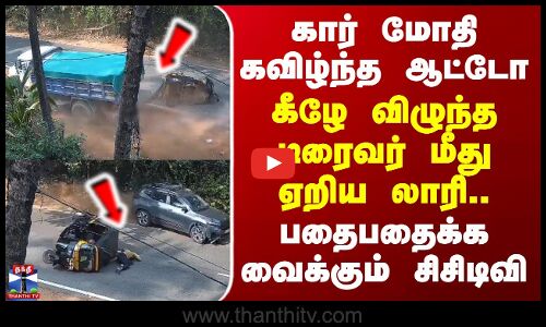 கர்நாடகாவில் கார் மோதி கீழே விழுந்த ஆட்டோ ஓட்டுநர் மீது லாரி ஏறியதில் சம்பவ இடத்திலேயே ஆட்டோ ஓட்டுநர் பரிதாபமாக உயிரிழந்தார். சம்பவம் தொடர்பான அதிர்ச்சி அளிக்கும் சிசிடிவி காட்சிகளை காண்போம்...